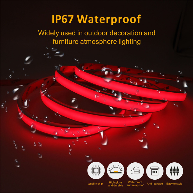 问:我可以将这些 COB LED 灯带用于户外应用吗???答:是的,,, ,,绝对!红色 COB 软灯带专为户外使用而设计。。。其柔软的硅胶管盖将 IP 品级提高到 IP67,,, ,,使其具有高度防水和防尘功效。。。